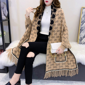 2021洋气秋冬装宽松字母中长款网红超火针织开衫很...