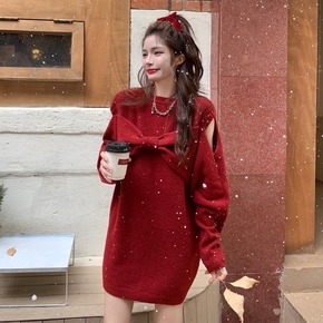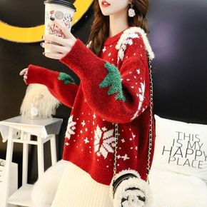 2022圣诞主题毛衣跨境亚马逊秋冬圆领长袖连衣裙小...