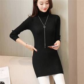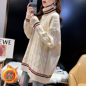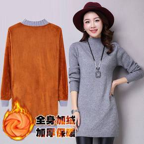 加绒/不加绒秋冬中长款毛衣韩版宽松半高领针织衫修身...