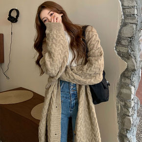 毛衣女2022秋冬长款水貂绒开衫宽松大码加厚中长款...