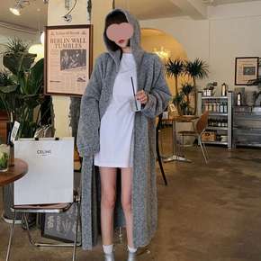 廓形感外套软糯连帽纯色中长款针织衫开衫女港味复古秋...