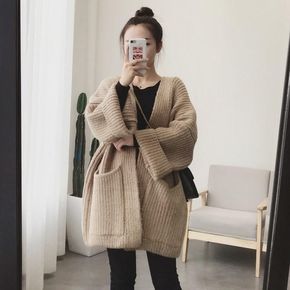 秋冬新款胖mm大码慵懒风毛衣外套女宽松中长款加厚针...