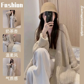 日系毛衣开衫女春秋外穿2022新款宽松慵懒风韩版中...