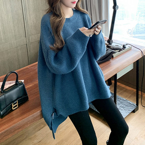 大码女装遮肚子慵懒风宽松针织衫上衣胖妹妹洋气开叉百...