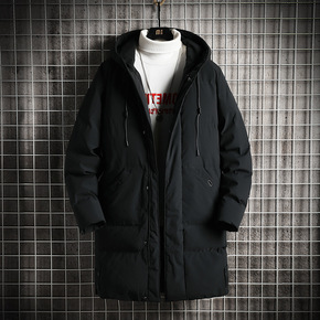 男式新款加长加厚休闲保暖棉服外套中长款连帽防风棉袄...
