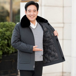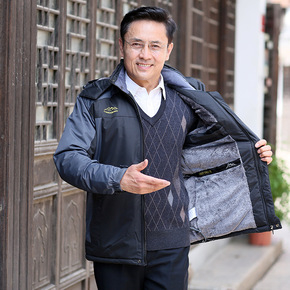 2021冬装男式棉服中老年男士翻领保暖可脱胆夹克款...