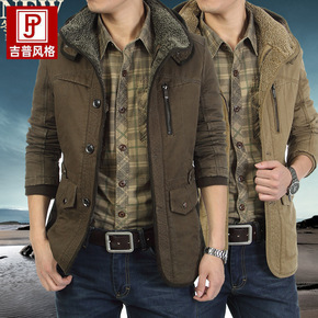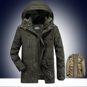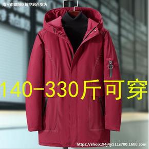 男装中长款棉服男加厚绒连帽加肥大码男装可脱卸内胆棉...