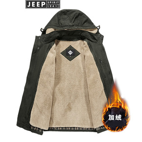 跨境外贸男式棉衣加绒冬季外套中长款加厚高档棉服连帽...