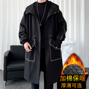 中长款棉衣男士冬季外套2021新款加厚连帽棉袄男韩...