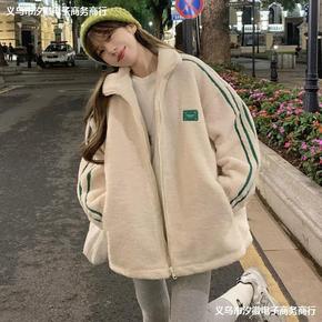 羊羔毛棉衣女冬季2022年新款韩版宽松学生加绒加厚...