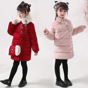 女童棉服唐装2021新款中大童风棉衣宝宝中长款加绒...