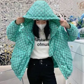 欧洲站棋盘格羽绒服女短款连帽2022新款韩版宽松厚...