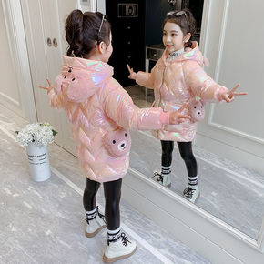 女童棉衣2021新款韩版洋气儿童加厚棉服中长款冬装...