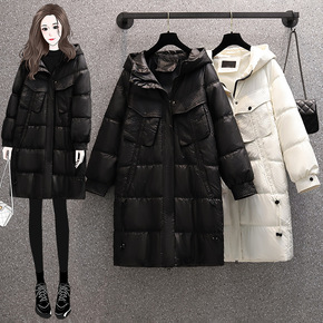 欧洲站高档羽绒服女2021新款冬季长款过膝连帽90...