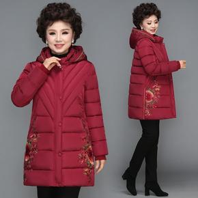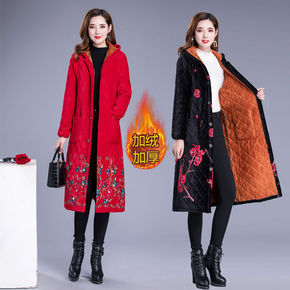 棉袄女中长款岁妈妈冬装新款女装中年外套加棉加厚棉服...