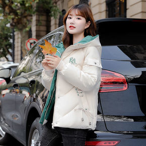 新款羽绒服女韩版宽松加厚白鸭绒时尚冬装短款面包服印...
