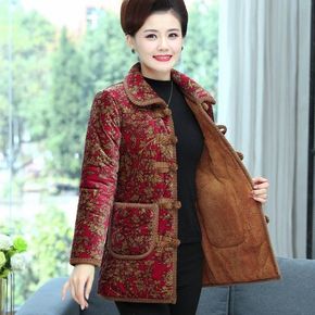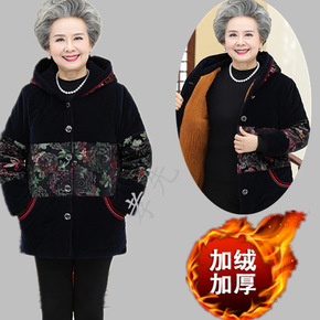 中老年人棉衣加绒加厚盘扣金丝绒棉袄女中长款妈妈装冬...