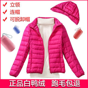 可脱卸帽羽绒服女短款秋冬新款韩版女士轻薄大码立领连...