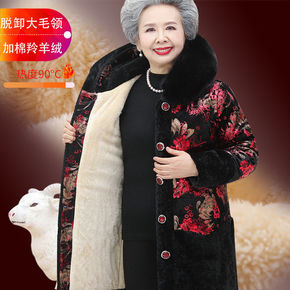 妈妈秋冬羊羔毛外套外套中老年棉衣女装短款加绒加厚棉...
