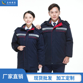 冬季加厚工作服棉服男反光条环卫棉衣工厂冷库防寒保暖...
