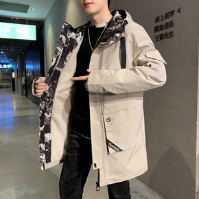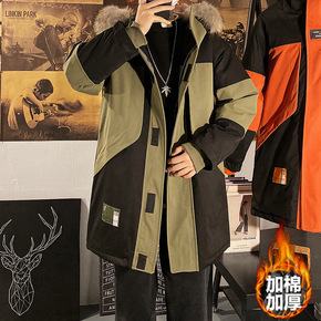 2020秋冬男士加绒棉服中长款连帽棉衣潮男式休闲男...