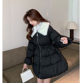 东大皱褶羽绒棉衣时尚少女温柔气显瘦收腰秋冬季中长款...