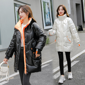 包邮免洗棉服女亮面韩版2020棉衣女中长款冬季宽松...