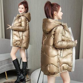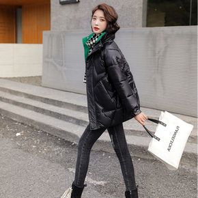 棉服2021年冬反季新款女韩版宽松免洗亮面羽绒棉衣...