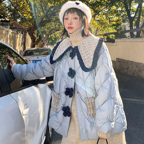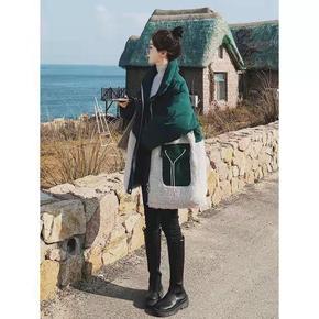 羊羔毛拼接羽绒棉服女中长款冬季新款宽松外套小个子韩...