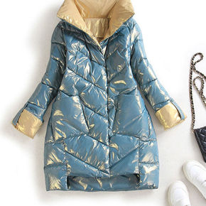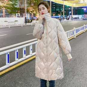 反季羽绒棉衣女中长款立领冬季新款韩版亮面小个子过膝...