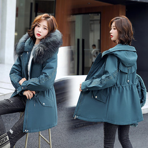秋冬装新款女棉衣韩版修身大码中长款大毛领连帽气质中...