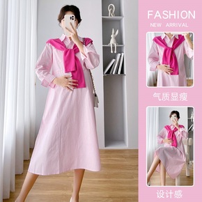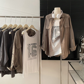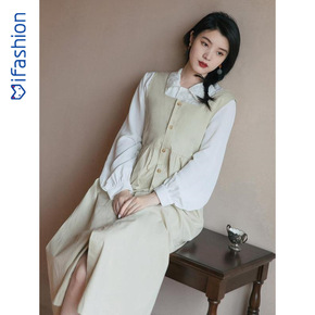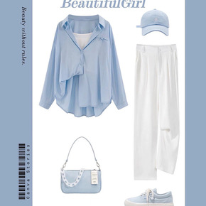 小众中长款衬衣拼接背心假两件长袖上衣套装白色休闲裤...