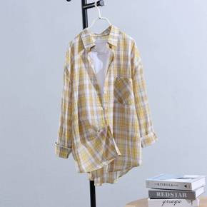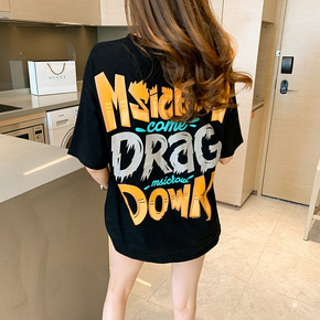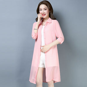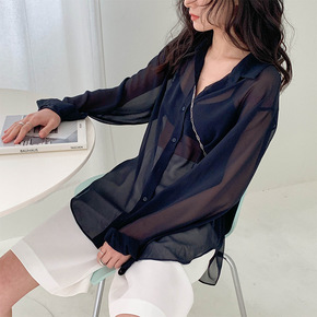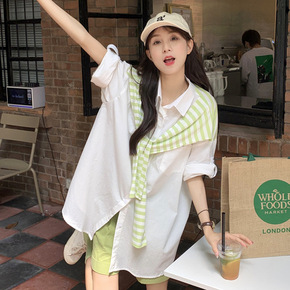 短袖T恤中长款衬衣女夏季薄款2022新款韩版长袖宽...