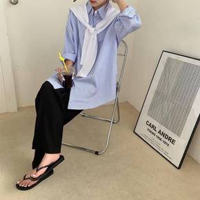 早春衬衫女条纹衬衣女2022新款春季复古港味宽松中...