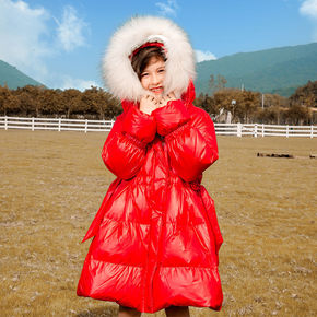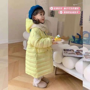 女童羽绒服中长轻薄款冬装新款洋气中大儿童白鸭绒貉子...
