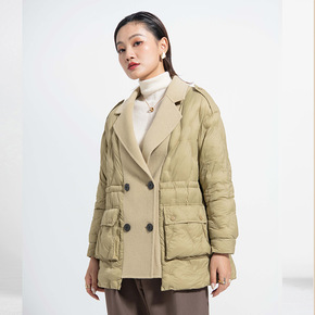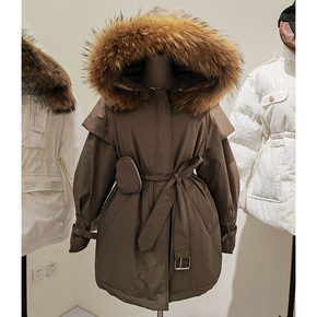 秋冬立领羽绒服 宽松收腰系带显瘦白鸭绒轻薄新款工装...