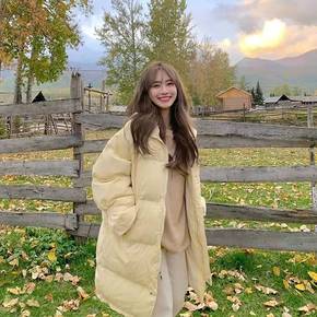202新款小香风棉服外套女秋冬轻薄鹅黄色羽绒服中长...