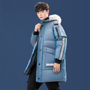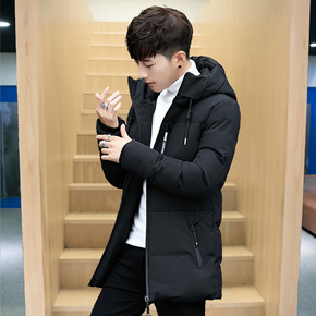 男士羽绒服棉衣帅气青少年青年中长款冬季大学生保暖加...