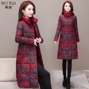 花色羽绒棉服冬装2020年新款女中长款洋气妈妈装加...