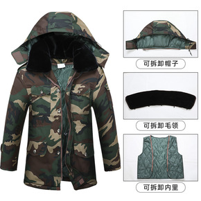 加厚棉衣男冬季迷彩棉服中长款防寒服工地汽修双层劳保...