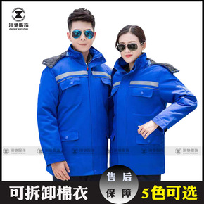 可拆卸加厚棉衣工作服男加油站路政车间安保工衣反光防...