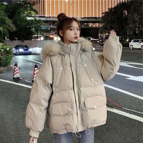 棉服女2021冬季新款韩版宽松面包服连帽毛领学生小...
