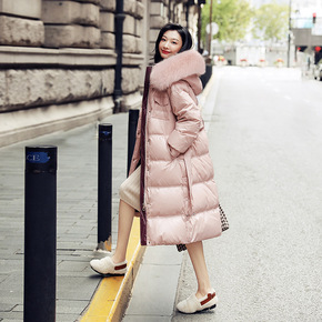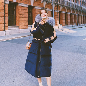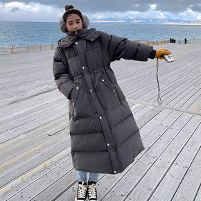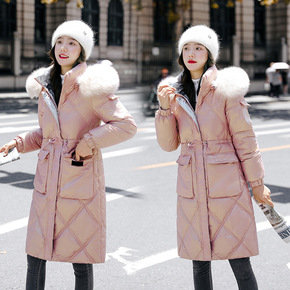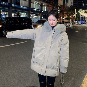 2021新款大毛领中长款羽绒棉服女韩版宽松过膝棉衣...