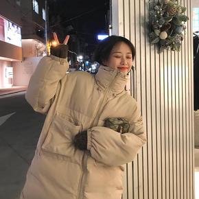 【手塞棉】冬季新款韩版宽松中长款棉衣女学生面包服棉...