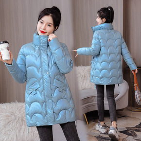 2022新款亮面羽绒棉服女冬装外贸面包服中长款棉袄...