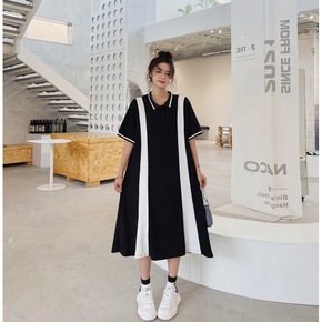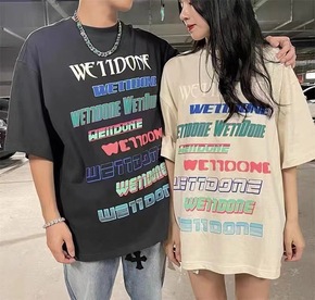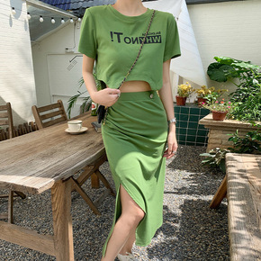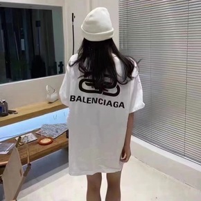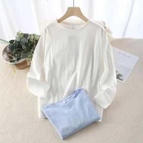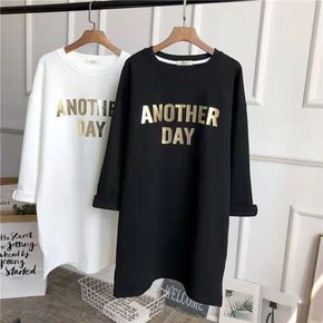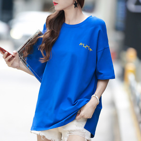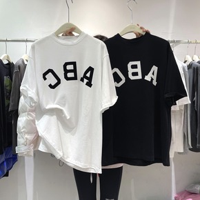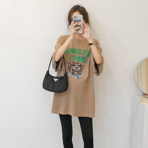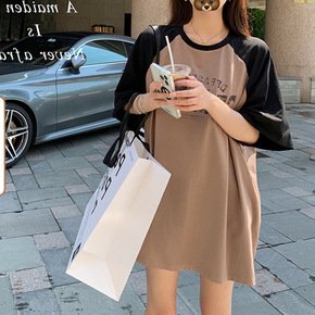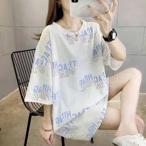 2022春季韩版新款宽松中长款圆领字母印花短袖T恤...