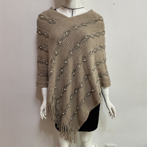 欧美跨境女装2022秋冬季新款慵懒风V领流苏钉珠斗...