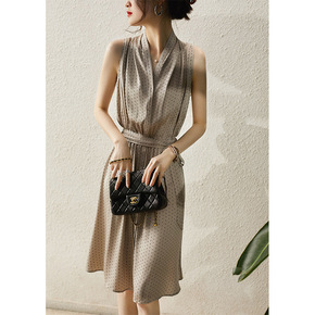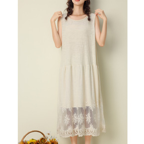 2022夏新款水洗棉舒适百搭 无袖连衣裙女夏中长款...