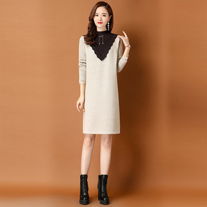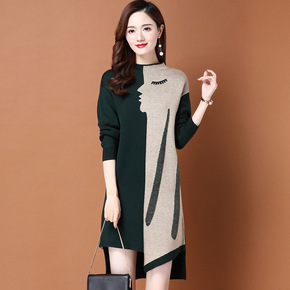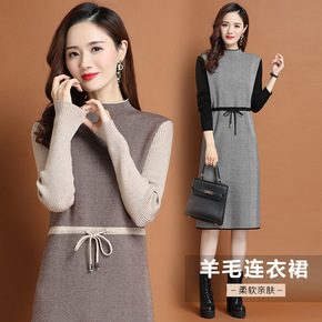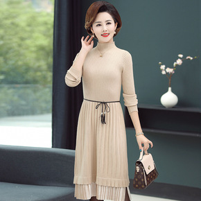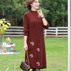 妈妈洋气中长款打底衫中年妇女装羊毛连衣裙中老年春秋...