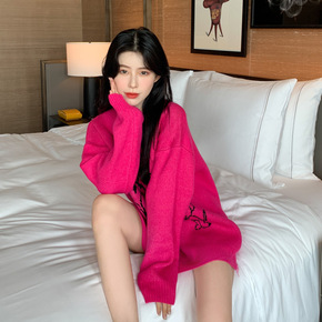 2022冬季韩版纯色山羊绒宽松加厚针织衫名媛气质高...